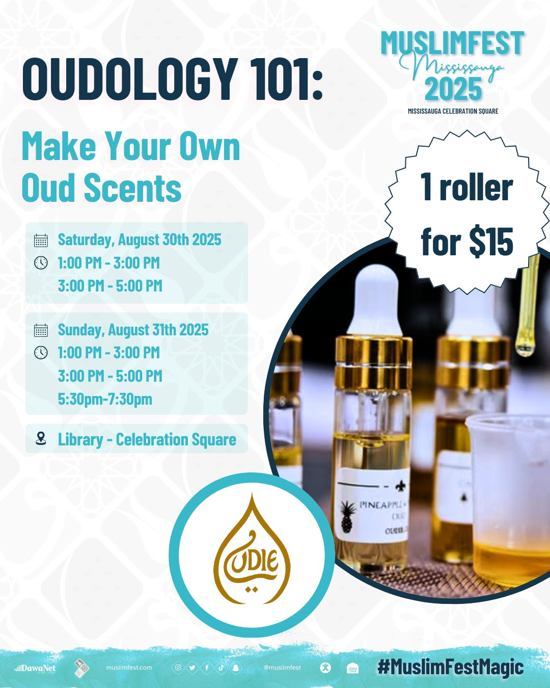 Curious about the rich tradition behind oud? Join MuslimFest for a hands-on Oud scent Workshop! You’ll get the opportunity to explore all the different kinds of ouds, one of the most traditional fragrances in the world. No experience needed, just bring your curiosity and a love for fragrance!